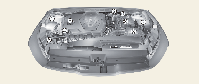 * قد تختلف غرفة المحرك الحقيقي بالسيارة عما هو في الرسم.
