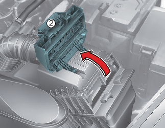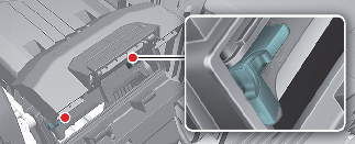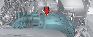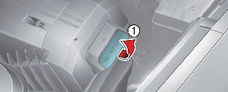 اسحب الذراع (1) الموجود على غطاء منظف الهواء وحرر القفل.