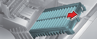 اسحب غطاء منظف الهواء لأعلى (٢) وافتحه.