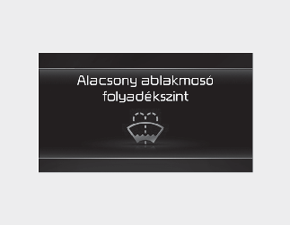 Ez a figyelmeztető üzenet akkor jelenik meg, ha a tartályból majdnem teljesen kiürült az ablakmosó folyadék.