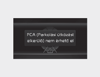 A Parkolási ütközéselkerülő segéd illetve a kapcsolódó funkciók nem megfelelő működése esetén a figyelmeztető üzenet megjelenik a műszercsoporton, a funkció pedig automatikusan lekapcsol. Javasoljuk, járművét egy hivatalos Kia-kereskedő/szervizpartner ellenőrizze.