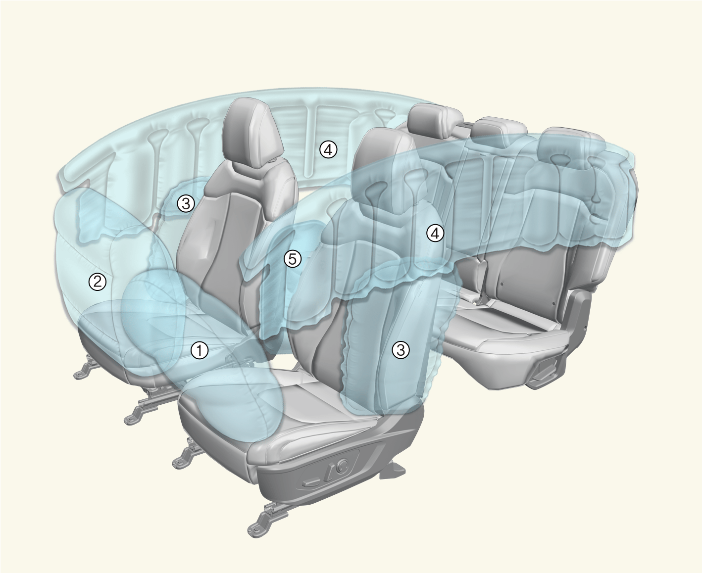 A vezetőnek és az utasoknak még a légzsákkal felszerelt gépkocsiban is mindenkor becsatolva kell tartaniuk a biztonsági öveket egy esetlegesen bekövetkező baleset vagy a legtöbb felborulás során elszenvedhető sérülés kockázatának és súlyosságának minimálisra csökkentése érdekében.
