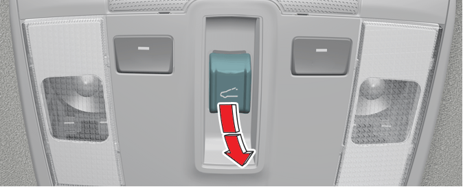 Nyomja előre a kapcsolót, amíg az elektromos napellenző és a napfénytető üvege kissé meg nem mozdul. Ezután engedje el a kapcsolót.