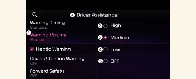Ha módosítja a figyelmeztetés hangerejét, a többi vezetéssegítő funkció figyelmeztetési hangereje is változhat.