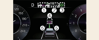 Az Autópályán történő vezetés segéd jelzőfénye, megjelenik az esetleg elöl haladó jármű és a kiválasztott távolsági szint.