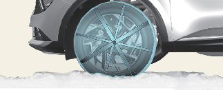 Az elsőkerék-meghajtású jármű az első kerekeket hajtja. Ezért a hóláncot az első gumiabroncsokra kell felszerelni.