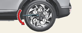7. Lazítsa ki a kerékanyákat az óramutató járásával ellentétes irányba, mindegyiket egy fordulattal. Ne távolítsa el egyik kerékanyák sem addig, amíg a gumiabroncs nem emelkedett el a talajtól.