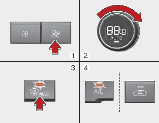 Hvis positionen til frisk luft udefra og aircondition ikke vælges automatisk, skal De indstille den tilsvarende kontakt manuelt.