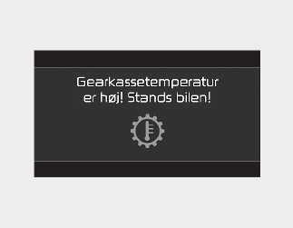 Hvis koblingen overophedes, tilkobles funktionen for sikker kørsel, kontrollampen for gearets position blinker på Instrumentklyngen, og der høres en kimen. På dette tidspunkt vises advarselsmeddelelsen "Transmission temp. is high! Stop safely" (Gearkassetemperatur er høj! Stands bilen!) på LCD-skærmen, og kørslen bliver måske ujævn.