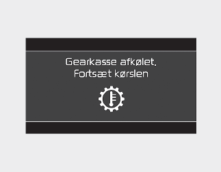 Hvis du ignorerer denne advarsel, kan kørselsforholdet blive værre. Du kan opleve pludselige skift, hyppige skift eller ryk. For at vende tilbage til normale køreforhold skal du stoppe bilen og anvende fodbremsen eller skifte til P-position (parkering).