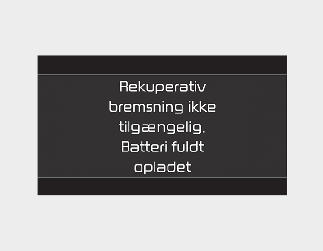 Regenerativt bremsesystem ikke tilgængeligt. Fuldt opladet batteri