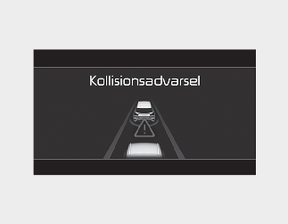• For at advare føreren om en kollision vises advarselsmeddelelsen ‘Collision Warning’ (Kollisionsfare) på klyngen, der høres en hørbar advarsel, og rattet begynder at vibrere.