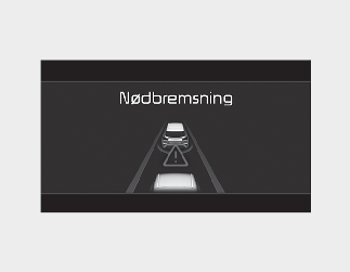 • For at advare føreren om, at nødbremsning vil blive hjulpet, vises advarselsmeddelelsen 'Emergency Braking' (Nødbremsning) på klyngen, der høres en hørbar advarsel, og rattet begynder at vibrere.