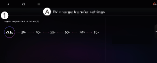 حدد EV (السيارة الكهربائية) ← EV Charge Transfer (نقل شحن السيارة الكهربائية) على الشاشة.