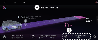 عندما يصل شحن البطارية العالية الجهد إلى حد التفريغ المحدد (%)، يتوقف التشغيل، ويتم عرض رسالة تحذير على مجموعة العدادات. إذا كنت تريد تشغيل شحن الأجهزة الخارجية (V2L)، فقم بتعيين حد التفريغ (%) على قيمة أقل من شحن البطارية الحالي.