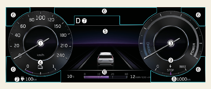 عندما يكون المستوى المتبقي من شحن البطارية أقل من 10% للبطارية عالية الجهد، تكون سرعة السيارة محدودة وبعد ذلك يتم إيقاف تشغيل السيارة (OFF) في نهاية المطاف. اشحن السيارة على الفور.