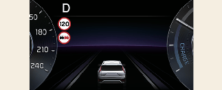 يتم عرض معلومات حد السرعة على لوحة العدادات.