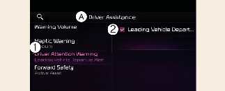 حين تكون السيارة قيد التشغيل، حدد إعدادات المستخدم ← مساعدة السائق ← تحذير تشتت انتباه السائق في مجموعة العدادات، أو حدد إعداد ← السيارة ← مساعدة السائق ← تحذير تشتت انتباه السائق في نظام الترفيه والمعلومات.
