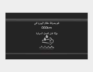 المنخفض جدًا ستظهر الرسالة "Refill Urea in 000 km or vehicle will not start" (أعد التزود بيوريا خلال 000 كم وإلا فلن يتم تشغيل