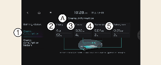 3. Elektronika zobrazuje výkon a spotřebu energie použitou pro systémy vozidla včetně přístrojové desky, informačního systému (reproduktorů a navigace), čelních světlometů, řídící jednotky vozidla atd.