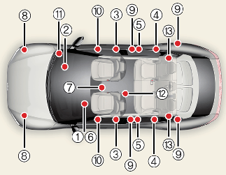 Zcela naplněný airbag, v kombinaci se správně umístěným bezpečnostním pásem, zpomalí dopředný pohyb těla řidiče a spolujezdce vpředu a sníží riziko poranění hlavy a hrudníku.