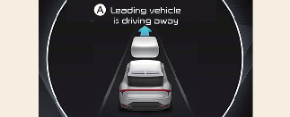 Když se stojící vozidlo vpředu začne rozjíždět, funkce upozornění na rozjetí vozidla vpředu řidiče upozorní zobrazením zprávy na přístrojovém panelu a zazní zvuková výstraha.