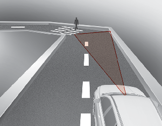 FCA kan upptäcka ett fordon, motordrivna tvåhjulingar, en fotgängare eller en cyklist som befinner sig i ett intilliggande körfält eller utanför ditt körfält under körning på en kurvig väg.