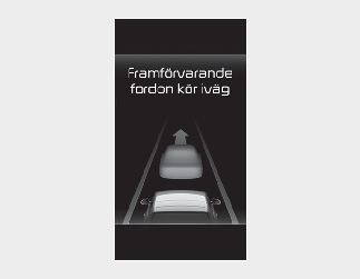 När ett fordon framför som upptäckts börjar köra efter att ha stått stilla informerar Startvarning för framförvarande fordon föraren om detta genom ett varningsmeddelande på instrumentpanelen och en ljudvarning hörs.