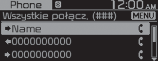 Po podłączeniu telefonu do systemu można wykonywać połączenia, wybierając nazwę z historii połączeń lub listy kontaktów.