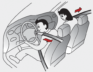 Předpínač se aktivuje nejen při čelním nárazu, ale i při bočním nárazu, pokud je vozidlo vybaveno bočními nebo okenními airbagy.
