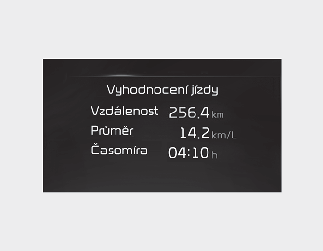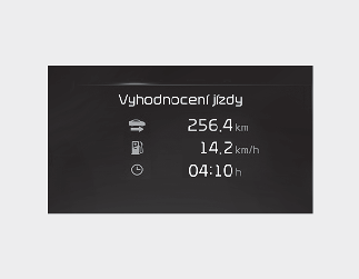 Tyto údaje jsou zobrazovány několik sekund po vypnutí systému vozidla a poté se automaticky vypnou. Údaje se počítají vždy od nastartování vozidla.