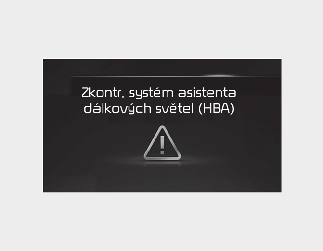 (HBA) system“ (Zkontrolujte systém asistenta dálkových světel) a rozsvítí se varovná kontrolka (