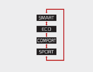 Režim SMART automaticky ovládá jízdní vlastnosti vozidla, například řadicí vzorce nebo točivý moment motoru, podle jízdních návyků řidiče.