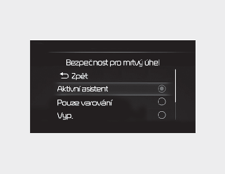 Asistenční nastavení pro předcházení kolizím v mrtvém úhlu