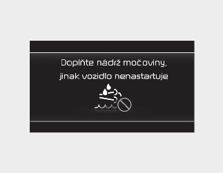 Pokud se zobrazí hlášení „Refill Urea or vehicle will not start“ (Doplňte močovinu, jinak vozidlo nepůjde nastartovat) s kontrolkou