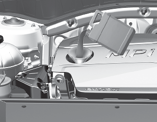 Při kontrole nebo doplňování motorového oleje buďte velmi opatrní, abyste se nedotkli hadice chladiče, která může být velmi horká a můžete se o ni popálit.