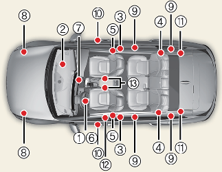 Ne placer aucun objet (parapluie, coussin, etc.) entre la portière avant et le siège avant. Ces objets peuvent devenir de dangereux projectiles si le coussin gonflable latéral se gonfle.