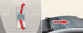 Appuyez sur le commutateur du toit ouvrant vers l’avant ou vers l’arrière jusqu’à la deuxième position d’encliquetage. Le pare-soleil électrique et la vitre du toit ouvrant fonctionneront automatiquement (fonction de glissement automatique).