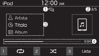 Home > Sistema di infotainment > Riproduttore media > Utilizzo del modo iPod