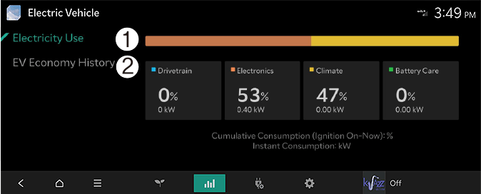 It is possible to check the history of energy consumption with the date and distance of previous driving. The icon is displayed on the most efficient energy economy record.