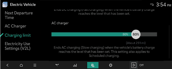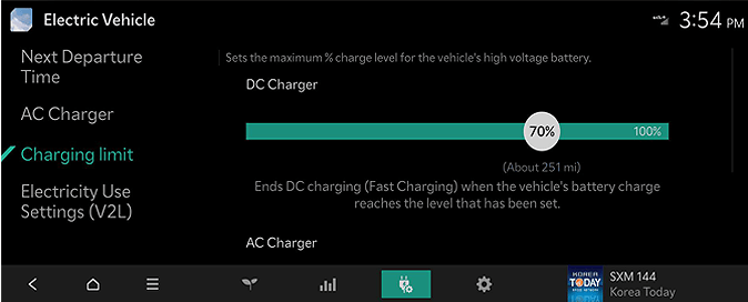 The target battery charge level can be selected when charged with AC charger or DC charger.