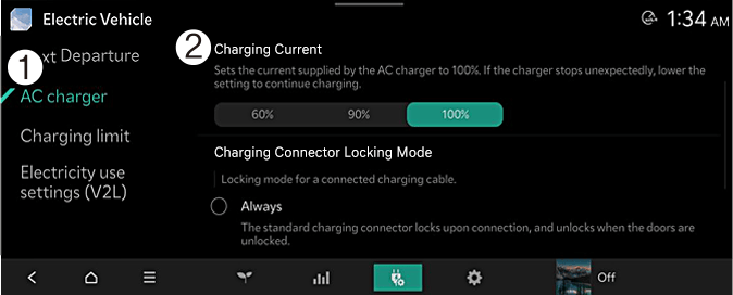 You can adjust the charging current for an AC charger. Select an appropriate charging current.