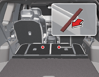 Press the 2nd row seat folding/unfolding switch(1 or 2) located on the right side of the luggage compartment.