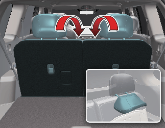 The seatbacks and headrests will automatically fold by pulling the 3rd row seat folding straps located on the seatback.