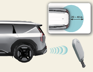 The Smart Liftgate with Auto Open operates with a welcome alert if the smart key is detected within 20 ~ 40 inches (50 ~ 100 cm) from the liftgate.