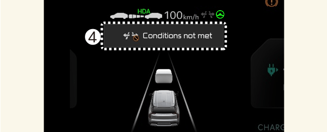 Highway Lane Change Assist function will turn on when the following conditions are satisfied.