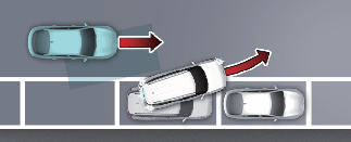 When you are driving forward out of a parking space, if Blind-Spot Collision-Avoidance Assist judges that there is a collision risk with an approaching vehicle in the blind spot, it can help avoid collision by applying the brake.