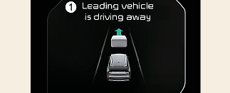 When a detected vehicle in front departs from a stop, Leading Vehicle Departure Alert will inform the driver by displaying the warning message on the cluster and an audible warning will sound.