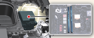 After checking the fuse panel in the motor compartment, securely install the fuse panel cover with clicking sound. If not, electrical failures may occur from water contact.