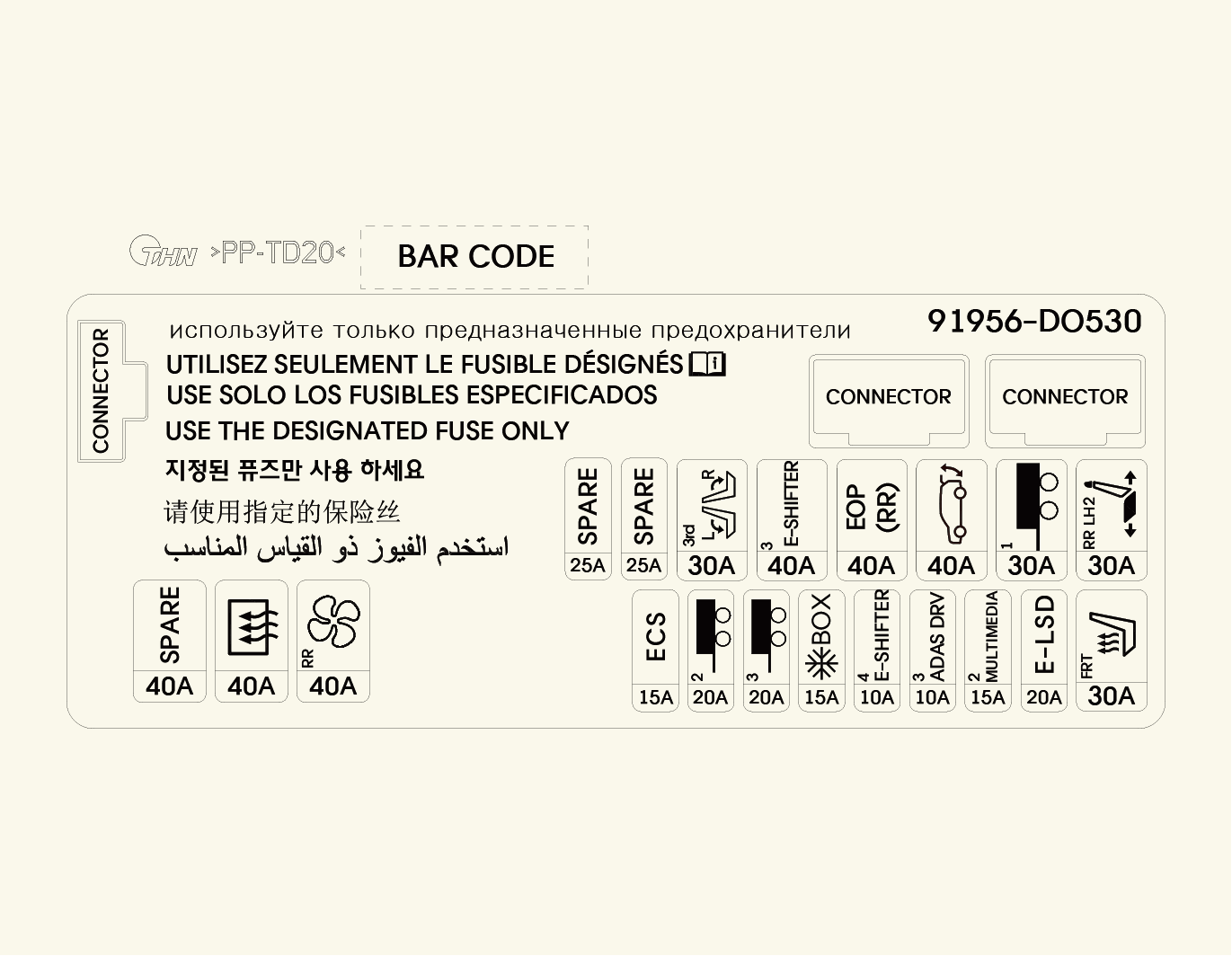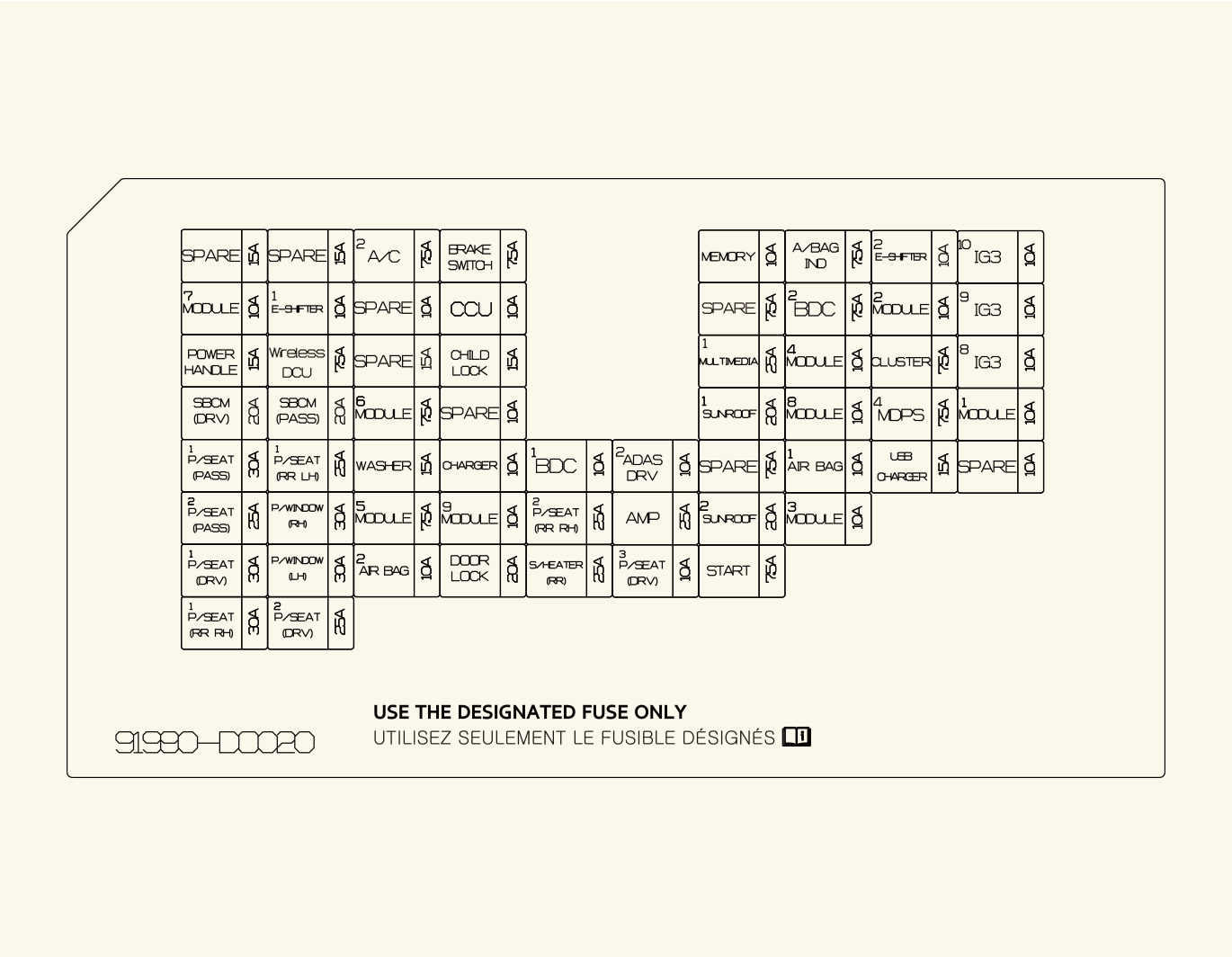 Inside the fuse/relay panel covers, you can find the fuse/relay label describing fuse/relay name and capacity.